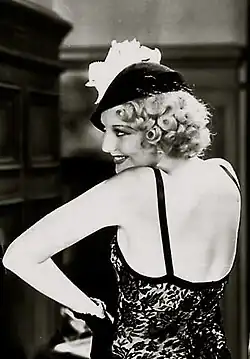 In 1930, the hat was revived – this is said to have been as a result of a hat created by the MGM designer Adrian and worn by Greta Garbo in the 1930 film Romance.[7][8] The hat became a talking point in Paris as well as the United States and was even covered in Time.[9] "The Eugenie hat is O.K. but let's draw the line there!" declared a 1931 newsreel in the United States, proceeding to show a parade of young women wearing variations on the design.[10] Another, from the same year, said: "Empress Eugenie hits country by storm – regardless" and proceeded to show a somewhat older parade of wearers, including market traders and a horse.[11] Chicago Tribune declared that many Paris dressmakers were considering a fashion revolution to bring dress into line with the new period-piece hats; it was being whispered, said the paper's Paris correspondent Bettina Bedwell, that bustles and crinolines might be revived.[12] By August of that year, it was reported that a new era of prosperity might be at hand for the garment industry. "Hat and women's wear manufacturers predicted today it would alleviate for a time at least, economic depression in their industries".[13] It was suggested that, for the first time in history, fashion designers were following the lead of milliners who had: "made women wear the hats in defiance of the styles in frocks, with the result that the couturiers have had to fall quickly in line and rush through styles to go with the hats".[14] In Australia, the hat was described as of "postage-stamp size" so that it revealed the back and sides of the hair and featured trims of bright feathers. It was also reported that famous wearers included actresses Peggy Shannon and Lilyan Tashman.[15]