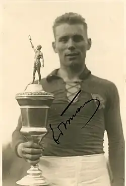 - ^ a b c d Karmo, Meelis (2015). Wabariigi vutituus. Eesti jalgpalli kuldinternatsionaali Eugen Einmanni lugu. ISBN 978-9949-512-57-7.