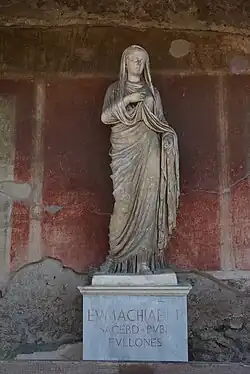 Eumachia (1st century AD) was a Roman business entrepreneur and priestess. She served as the public priestess of Venus Pompeiana in Pompeii as well as the matron of the Fullers guild. She is known primarily from inscriptions on a large public building which she financed and dedicated to Pietas and Concordia Augusta.[1][2]