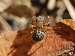 In Wayne Maddison's 2015 study of spider phylogenetic classification, the genus Euophrys was listed to the tribe Euophryini.[7] First circumscribed by Simon in 1901, the tribe has also been known as Euophrydinae, but the original name is now more prevalent.[8] It is a member of a subgroup of genera called Evophrydeae after the latter name.[9] It is a member of the clade Saltafresia.[10] Analysis of protein-coding genes showed it was particularly related to Thorelliola.[11] In 2016, Prószyński added the genus to a group of genera named Euopherines, named after the genus.[12] This is a member of the supergroup of genera Euphryoida.[13]