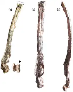 - ^ a b c d e f g h i Vremir, M. T. S.; Kellner, A. W. A.; Naish, D.; Dyke, G. J. (2013). Viriot, Laurent (ed.). "A New Azhdarchid Pterosaur from the Late Cretaceous of the Transylvanian Basin, Romania: Implications for Azhdarchid Diversity and Distribution". PLOS ONE. 8 (1): e54268. Bibcode:2013PLoSO...854268V. doi:10.1371/journal.pone.0054268. PMC 3559652. PMID 23382886.