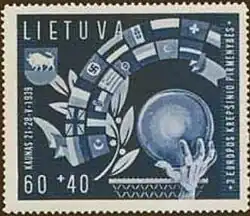 At first, after sending the invitations, 17 countries wished to compete. Even the basketball newcomers Great Britain, Turkey, and Germany planned to participate in it. Because of this, one of the issued postage stamp had flags of 17 countries.[3] Though, when Kaunas was waiting for the guests from all the European countries, World War II phantom was already wandering in Europe. That changed things, with some of the 17 planned countries no longer interested in participating in the tournament.
