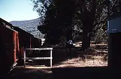 Eurobin railway station was located on the Bright line serving the town of Eurobin in Victoria. It opened on 17 October 1890 and closed on 30 November 1983.[1] A new shelter and toilet buildings have been constructed on the site of the former station in the shape of a steam train, as part of the Murray to the Mountains Rail Trail. The station was situated 2km east of St Clement's Church Eurobin and directly opposite Eurobin Presbyterian Church.