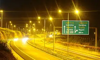 - ^ Ministerial Decision G25871/1963 (FEK B' 319/23.7.1963, pp. 2500–2501). Ministerial Decision DOY/oik/5776/2015 (FEK AAP' 253/21.12.2015, pp. 2101–2102). "Μητρώο Εθνικών Οδών" [Register of National Roads] (PDF) (in Greek). Athens: Hellenic Statistical Authority. 1998. p. 14. Archived from the original (PDF) on 8 June 2019. Retrieved 30 August 2024.