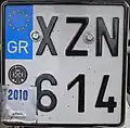 Greece uses a combination of three letters (before only two) that are homoglyphs of Latin letters, i.e. A, B, E, Z, H, I, K, M, N, O, P, T, Y, X in Greek alphabetic order) and four digits, in the form of AAA-0000, while Latvia uses a similar format with two letters and four digits (AA-0000).