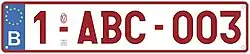 Belgium uses red characters and is the only country not to use the standard black-on-white or black-on-yellow combination; with the introduction of European-style plates in November 2010, a slightly darker shade of red was chosen (RAL 3003) to improve legibility.