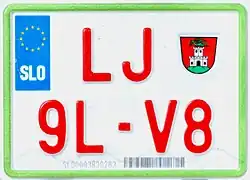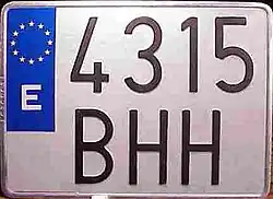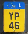 The common EU format of having a blue section on the extreme left with EU circle of stars and the country code was introduced by Council Regulation (EC) No 2411/98 of 3 November 1998[2] and entered into force on 11 November 1998. It was based on a model registration plate which three member states had already introduced: Ireland (1991),[3]Portugal (1992)[4] and Germany (1994).[5]Luxembourg plates had displayed the EU flag on the left since 1988. Vehicles with registration plates in the EU format do not need to display the white oval international vehicle registration code while within the European Economic Area,[6] or in countries party to the Vienna Convention on Road Traffic (except if the plate is issued in Cyprus, Ireland, Malta and Spain).[7]