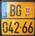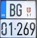 Serbia, Slovenia and Croatia use MM 000-AA, where MM stands for a city or a municipality. Additionally, Croatia and Serbia issue plates with four digits (MM 0000-AA) in large cities such as Zagreb and Belgrade, while Croatia also uses MM 0000-A. All three countries use the national coat of arms after the municipality code. Croatia uses only Croatian Latin letters without diacritics, (except for city codes, like ČK for Čakovec), while Serbia uses Latin characters for municipality codes and dubs Cyrillic characters in a smaller font. Slovakia also used this format until 2023, while Montenegro uses a reverse format, MM AA 000
