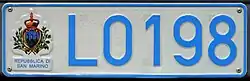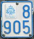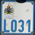 Andorra and Monaco use registration plates with their coat of arms above the respective country codes (AND and MC). San Marino issues similar plates but with the text "Repubblica di San Marino" underneath the coat of arms, instead of the country code RSM.