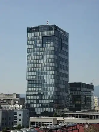 Eurotower is a high-rise building in Zagreb, Croatia, located in Trnje at the intersection of the Vukovarska and Lučićeva streets, in the southwest corner. It was built in 2006. This office tower has 26 levels and it is 96 m (315 ft) tall. The Embassy of the Republic of Lithuania to the Republic of Croatia, Montenegro, the Republic of Kosovo, and the Republic of North Macedonia is located in the building.