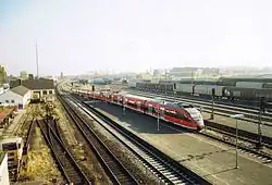 Euskirchen station is an important transport hub with heavy commuter traffic in the German state of North Rhine-Westphalia. It is it situated on Cologne–Trier, Bonn–Euskirchen, Euskirchen–Bad Münstereifel and the Euskirchen–Düren lines. The station is located on Alleestraße (street) on the Pützberg (hill) and is the largest station in the district.
