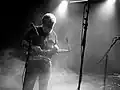 Parker is perhaps best known for his solo performances. Originally dismissive of solo performance as being too close in nature to traditional composition, he was inspired to experiment with solo performance by the possibilities for musician-instrument interaction demonstrated by Derek Bailey’s solo guitar improvisations.[4] Primarily using the soprano saxophone for these solo performances, the music makes use of a principle known as auditory streaming,[5] where the use of wide registers creates the illusion of polyphony, which Parker terms “pseudo-polyphony”. This effect is achieved primarily by using multiphonics or harmonics in combination with circular breathing, polyrhythmic fingering, and split tonguing.[6]