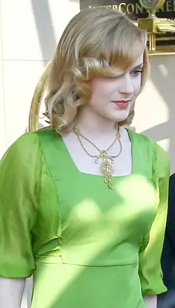By 2006, Wood was described by The Guardian as being "one of the best actresses of her generation."[4] Later that year, she received the Spotlight Award for Emerging Talent at Premiere magazine's annual Women in Hollywood gala.[27] Also in 2006, Wood appeared with an all-star ensemble cast as Natalie Finch in the comedy-drama film Running with Scissors.[28] Directed by Ryan Murphy and starring Annette Bening, the film was based on the memoir by Augusten Burroughs, which is a semi-autobiographical account of Burroughs' childhood in a dysfunctional family.