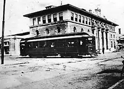 Evansville's economy received a boost in the early 1830s when Indiana unveiled plans to build the longest canal in the world, a 400-mile ditch to connect the Great Lakes at Toledo, Ohio with the inland rivers at Evansville. The project was intended to open Indiana to commerce and improve transportation from New Orleans to New York City. The project bankrupted the state and was so poorly engineered that it would not hold water. By the time the Wabash and Erie Canal was finished in 1853, Evansville's first railroad, Evansville & Crawfordsville Railroad, was opened to Terre Haute.[10] The expansion of railroads in this territory had made the canal obsolete. Only two flat barges ever made the entire trip.[11] The canal basin at Fifth and Court street in downtown Evansville became the site of a new courthouse in 1891.[11]