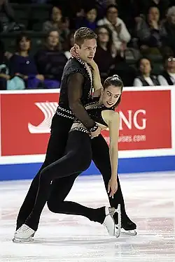![]() Evelyn Walsh and Trennt Michaud at the 2018 Skate America | |||||||||||||||||