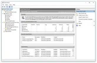 Event Viewer is a component of Microsoft's Windows NT operating system that lets administrators and users view the event logs, typically file extensions .evt and .evtx, on a local or remote machine. Applications and operating-system components can use this centralized log service to report events that have taken place, such as a failure to start a component or to complete an action. In Windows Vista, Microsoft overhauled the event system.[1]