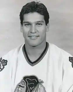 Sanipass began his National Hockey League career with the Chicago Blackhawks in 1987 after being drafted 14th overall in the 1986 NHL Entry Draft.[2] His indigenous heritage as a Mi'kmaq caused him to face racism early in his hockey career since he was prohibited from playing on off-reserve teams.[3] Sanipass was the first native draft pick out of New Brunswick.[4] His tally of forty-three goals and twenty-six assists in only thirty-seven games while playing in the New Brunswick Amateur Hockey Association drawing considerable attention.[5] Sanipass spent 2 seasons with the Chicago Blackhawks before being traded to the Quebec Nordiques.[4]