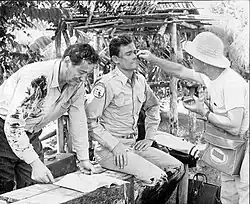 ![]() Ron Hayes (Lincoln Vail) being made up for a scene | |