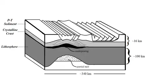 - ^ a b c d Mutter, John C; Larson, Roger L. (1989). "Extension of the Exmouth Plateau, offshore northwestern Australia: Deep seismic reflection/refraction evidence for simple and pure shear mechanisms". Geology. 17 (1): 15–18. Bibcode:1989Geo....17...15M. doi:10.1130/0091-7613(1989)017<0015:EOTEPO>2.3.CO;2.