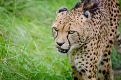 Close-up image of a cheetah, showing its malar stripes