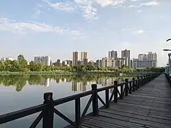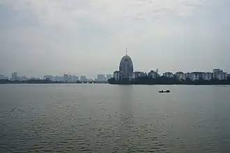 Left to right, top to bottom: Central Yanglan Lake, Guanyin Pavilion, Lingquan Temple, Yu Liang Gate (looking south), the city viewed from Yanglan Lake | |