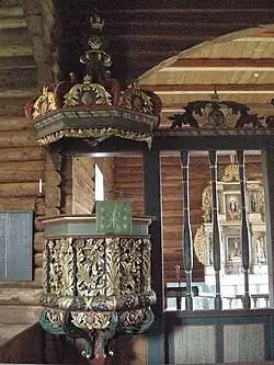 During other restorations from 1927 to the end of the 1950s, the interior and furniture were largely restored to its appearance before the 1884 modernization. The interior paneling was removed, some of the damaged furniture was found and was put back in place. A baptismal sacristy was built in 1901. In 1972, the church exterior was painted red. In 2007, the local newspaper reported about rot problems in the church, and shortly afterwards reported that money had been allocated for repairs.[6]