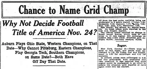 - ^ Wood, Frank E. (December 4, 1929). "National Football Standings: Utah, Tennessee, Pittsburgh, Tulane". Somerset Daily Herald. Central Press Association. Retrieved November 20, 2023.