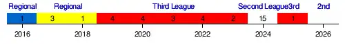 | 2024–25 | Third League | 3 | 38 | 35 | 1 | 2 | 131 | 18 | +113 | 106 | 1st ↑ | Round of 32 | Cup of AFL | Q3 | 36 | |