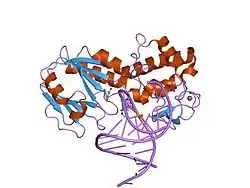 - ^ Gilboa R, Zharkov DO, Golan G, Fernandes AS, Gerchman SE, Matz E, Kycia JH, Grollman AP, Shoham G (May 2002). "Structure of formamidopyrimidine-DNA glycosylase covalently complexed to DNA". J. Biol. Chem. 277 (22): 19811–6. doi:10.1074/jbc.M202058200. PMID 11912217.