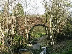 A toll house was located on the road to Mauchline at Woodhead on the lane up to the old Failford tileworks on the Yonderton Burn below Tunnockhill Farm.[11] The name Failford also officially applied as late as 1842 to the nearby hamlet at Fail where the Trinitarian Fail Monastery once stood. Its ford was located about 80 yards downstream from Fail Bridge.[12]