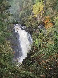 Falls of Moness is a waterfall of Scotland.[1] The Falls of Moness located in Aberfeldy, Perthshire, Scotland is a 150m high waterfall tucked away in the Birks of Aberfeldy.[2]