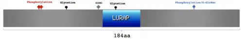FAM89A has three predicted phosphorylation sites located at amino acid positions 30, 32, and 168 that are conserved in distant orthologs.[32] The predicted phosphorylation site at position 32 is experimentally verified at position 28 in its paralog, FAM89B.[33] There is a possible competitive binding site for phosphorylation and O-linked β-N-acetylglucosamine (O-GlcNAc) at position 158,[34] supporting localization of FAM89A in the nucleoplasm.[29][30]