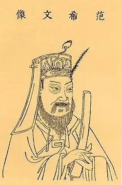 Fan Zhongyan (5 September 989 – 19 June 1052), courtesy name Xiwen (希文), was an accomplished statesman, writer, scholar, and reformer of the northern Song dynasty.[1] After serving multiple regional posts and at the imperial court for over two decades, Fan was appointed as a vice chancellor by Emperor Renzong to lead the Qingli reforms.[2] Although short-lived, the Qingli reforms and Fan Zhongyan's ideas inspired later reformers, most notably Wang Anshi. Fan's attitude towards official service is encapsulated by his oft-quoted line on the proper attitude of scholar-officials: "They were the first to worry the worries of all-under-Heaven, and the last to enjoy its joys".[3] Fan's philosophical, educational and political contributions were exemplar of a Confucian scholar dedicated to public service. He was considered a mentor and leader of the lettered class and a pilot in political reforms. He advocated for the classical prose movement and is well-known for his ci poetry. He elevated the charitable family estate to an important institution promoting social welfare at the community level.