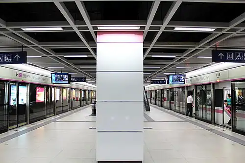 Fanhu Station (Chinese: 范湖站) is an interchange station of Line 2 and Line 3 of the Wuhan Metro. It entered revenue service on December 28, 2012. It is located in Jianghan District.[1] The Line 3 station platforms opened on December 28, 2015.