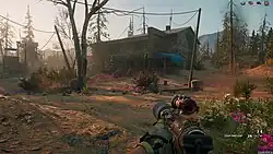 Players can embark on treasure hunts and liberate different enemy encampments and outposts. Once liberated, they become fast travel points that enable players to quickly navigate the world. These outposts can be occupied and used to manufacture ethanol fuel or raided for resources which leaves the outpost open to "escalation", in which the Highwaymen may reclaim these camps.[3] This allows the player to replay the outposts on higher difficulty settings. The game also features an upgradable home base named Prosperity, which slowly expands and grows in size as players progress. The game also features a mode called "Expeditions", which allows the player to travel to other locations in the United States such as Louisiana to look for more resources and packages.[2] As these regions are outside the main map and smaller in size, the development team was able to create more complex environments for Expeditions. Expedition missions can be completed with other players.[5]