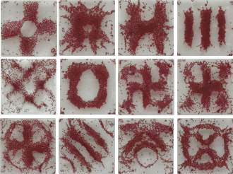 Faraday waves are used as a liquid-based template for directed assembly of microscale materials including soft matter, rigid bodies, biological entities (e.g., individual cells, cell spheroids and cell-seeded microcarrier beads).[5] Unlike solid-based template, this liquid-based template can be dynamically changed by tuning vibrational frequency and acceleration and generate diverse sets of symmetrical and periodic patterns.