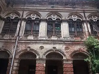 There are a number of historic buildings in Farashganj, mostly dilapidated. The stately two-story riverside mansion Ruplal House is now occupied by squatters.[4] The once magnificent 19th-century mansion Bara Bari, with its ornate curved balconies over the street, has been partly demolished.[5][6]