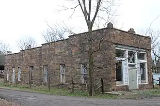 The Farmer's State Bank is a historic commercial building on Seller Street in New Blaine, Arkansas. It is a long rectangular single-story masonry structure, built of cut fieldstone and covered by a flat parapeted roof. The front facade has a single storefront, consisting of plate glass windows flanking a double-door entry, with large transom windows above all three elements. Built in 1922, it is the sole surviving commercial building along what was once New Blaine's commercial downtown area.[2]