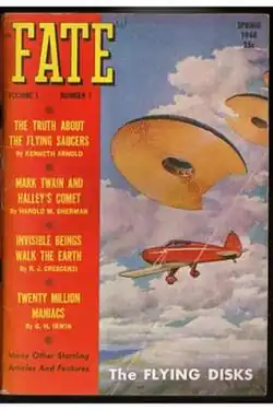 Established in 1948 by Clark Publishing Company, the first edition of Fate hit world newsstands in the spring. Co-founded by Ray Palmer, editor of the Amazing Stories magazine, and Curtis Fuller, an accomplished editor in his own right, the magazine's inaugural edition featured an article by Kenneth Arnold who recounted in it his UFO encounter in 1947. Arnold's sighting marked the beginning of the modern UFO era, and his story propelled the magazine to national recognition.[6] The headquarters is in Lakeville, Minnesota.[7]