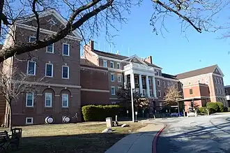 The Fayetteville Veterans Administration Hospital is a medical facility of the United States Department of Veterans Affairs at 1100 North College Avenue in Fayetteville, Arkansas. Set in a campus-like environment are a hospital and other care facilities, residences, and other utility buildings. The core of the complex, including its main hospital building, were built in 1934, and represent an architecturally cohesive collection of Colonial and Classical Revival buildings.[2]