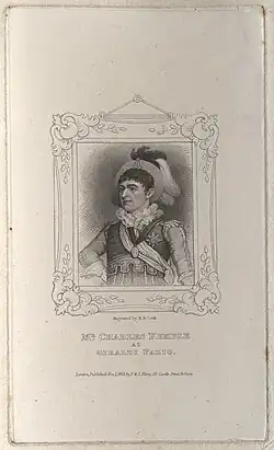 Fazio is a tragedy by the British writer Henry Hart Milman. It was first published in 1815. An unauthorised adaptation was performed at the Surrey Theatre under the title The Italian Wife. Another unauthorised version was performed at the Theatre Royal, Bath. In 1818 Milman granted permission for the Theatre Royal, Covent Garden to stage the play. It premiered there on 5 February 1818.[1] It starred Charles Kemble as Giraldi Fazio, Elizabeth O'Neill as Bianca, Daniel Egerton as the Duke of Florence, Charles Mathews as Gonsalvo, William Blanchard as Bartolo, Harriet Faucit as Aldabella and Charles Connor as Falsetto. A first Dublin performance took place at the Crow Street Theatre on 6 April 1818.[2] Fanny Kemble later played Bianca in Britain and America,[3] where she appeared at the Park Theatre in 1832. It was revived on both sides of the Atlantic over the following decades.
