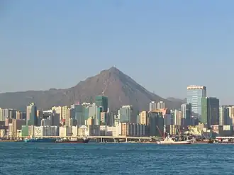 Kowloon Peak,[1] also known as Fei Ngo Shan (literally: "Soaring Goose Mountain", Chinese: 飛鵝山), is a 1,975-foot-tall (602 m) mountain in the northeast corner of New Kowloon, Hong Kong, situated in Ma On Shan Country Park.[2] With the summit located just to the east of the border between Wong Tai Sin and Sai Kung districts,[3] it is the tallest mountain in Kowloon, and is crossed by both the Wilson Trail and the MacLehose Trail.