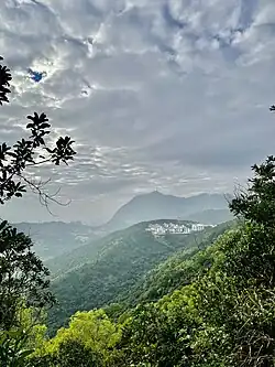 Kowloon Peak has a steep slope facing south towards northwestern Kowloon, while having a relatively smooth curve towards the east and west. The peak connects with Middle Hill (象山), known also as Cheung Shan, and Tung Shan (東山) in the north,[3] forming a ridge of mountains.[4] Despite being in an easily accessible location by car and walks, there are occasional sighting reports of Burmese pythons,[5] East Asian porcupines,[6] red muntjacs[7] and wild boars.[8]