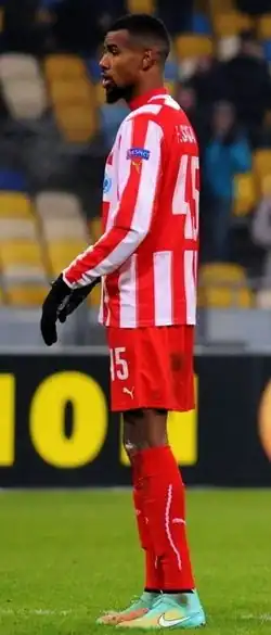 He made his debut for the club, starting the whole game, in a 1–1 draw against Flamengo in the opening game of the season.[193] Santana has been involved in a number of first team matches for the next two months, playing in the centre–back position.[194][195][196][197] He scored his first goal for Atlético Mineiro, in a 2–2 draw against Sport Recife on 22 June 2017.[198] However, Santana was plagued with injuries that affected his season.[199][200][201][202][203] At the end of the 2017 season, he went on to make fourteen appearances in all competitions.