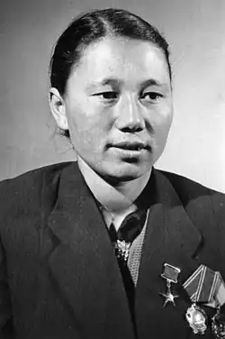 | Khertek Anchimaa | ![]() | Chairwoman of the Presidium of the Little Khural | 6 April 1940 | 11 October 1944 | 4 years, 188 days | Head of state | ||