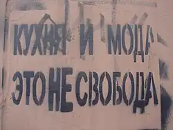 During glasnost and after the fall of the Soviet Union, feminist circles began to emerge among intelligentsia women in major cultural centers like Moscow and St. Petersburg.[37] In the 1990s, Russian women were hesitant to use the term "feminist" to describe themselves, because they believed it to have negative connotations throughout Russian history, and especially after the Revolution, when it was equated with the "proletariat" woman who only cares for her career, not her family.[38] Russian women's activism in the 1990s was not explicitly feminist; women attempted to improve their financial and social conditions through any practical means. From this struggle emerged female communities which empowered many women to assert themselves in their pursuit of work, equitable treatment and political voice.