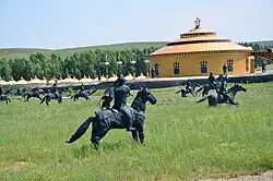 The county's primary tourist attraction are the horse ranches in the Datan grassland. Other highlights are the Dahan Palace of Genghis Khan and the Baiyun Ancient Cave.[8] The height of the tourism season is in July and August when there are bonfire festivities filled with ethnic songs and dances, roasted whole lamb, and staged traditional sporting events like wrestling and archery.[8]