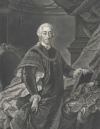 Ferdinand Bonaventura Anton von Harrach zu Rohrau und Thannhausen (11 April 1708 – Vienna, 28 January 1778) was an Austrian statesman, diplomat, Knight of the Order of the Golden Fleece and Governor of Milan. To distinguish him from his grandfather of the same name, he is referred to in contemporary sources as Ferdinand Bonaventura II.