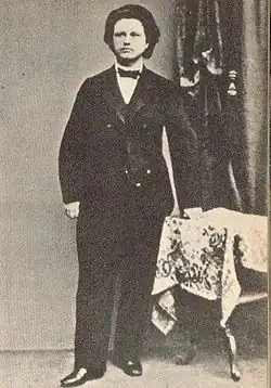 For the New Year of 1840, his father gave him a diary. The boy, not yet fifteen, recorded his activities, faults, and good deeds, aiming to understand his own character.[1] His early diary reveals a precocious, quick-witted boy, capable of warm affection but unscrupulous when he truly wanted something. He was a voracious reader with intense dreams of knight-errantry and glory.[2] He was highly sensitive about the figure he cut, his Jewishness, and his background as the son of a provincial tradesman.[2] The diary shows an early interest in gambling, a keen eye for money, and a casuistic ability to justify his actions, such as playing billiards despite his father's prohibition.[3] He also displayed a precocious interest in romantic intrigues, offering advice to family friends.[4]