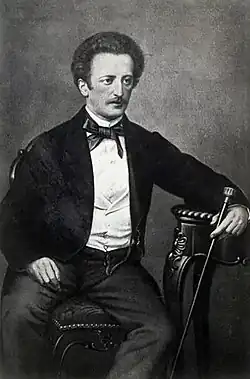 Lassalle's relationship with Countess Hatzfeldt entered a period of crisis. He was ambitious and she feared a lonely old age.[62] Her son Paul also resented Lassalle. Lassalle desired to move to Berlin to work on his long-planned book on Heraclitus and to play the lion in its salons, but police permission was repeatedly denied.[63] In 1856, he undertook an Eastern tour with his brother-in-law Friedland, visiting Budapest, Belgrade, Bucharest, and Istanbul.[64] During this trip, he learned of Arnold Mendelssohn's death in the Crimean War, which deeply moved him.[65] The tour was cut short due to the Countess's financial worries caused by a stock market slump.[66]